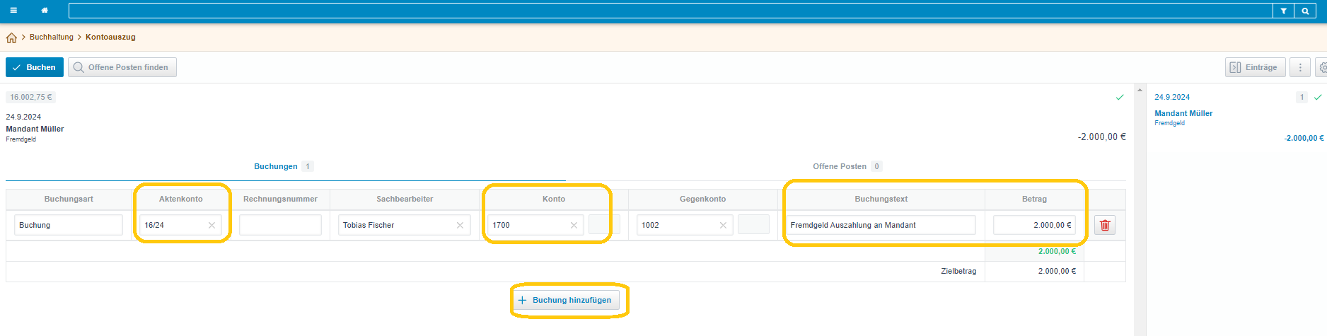 Beispiel Fremdgeld buchen: