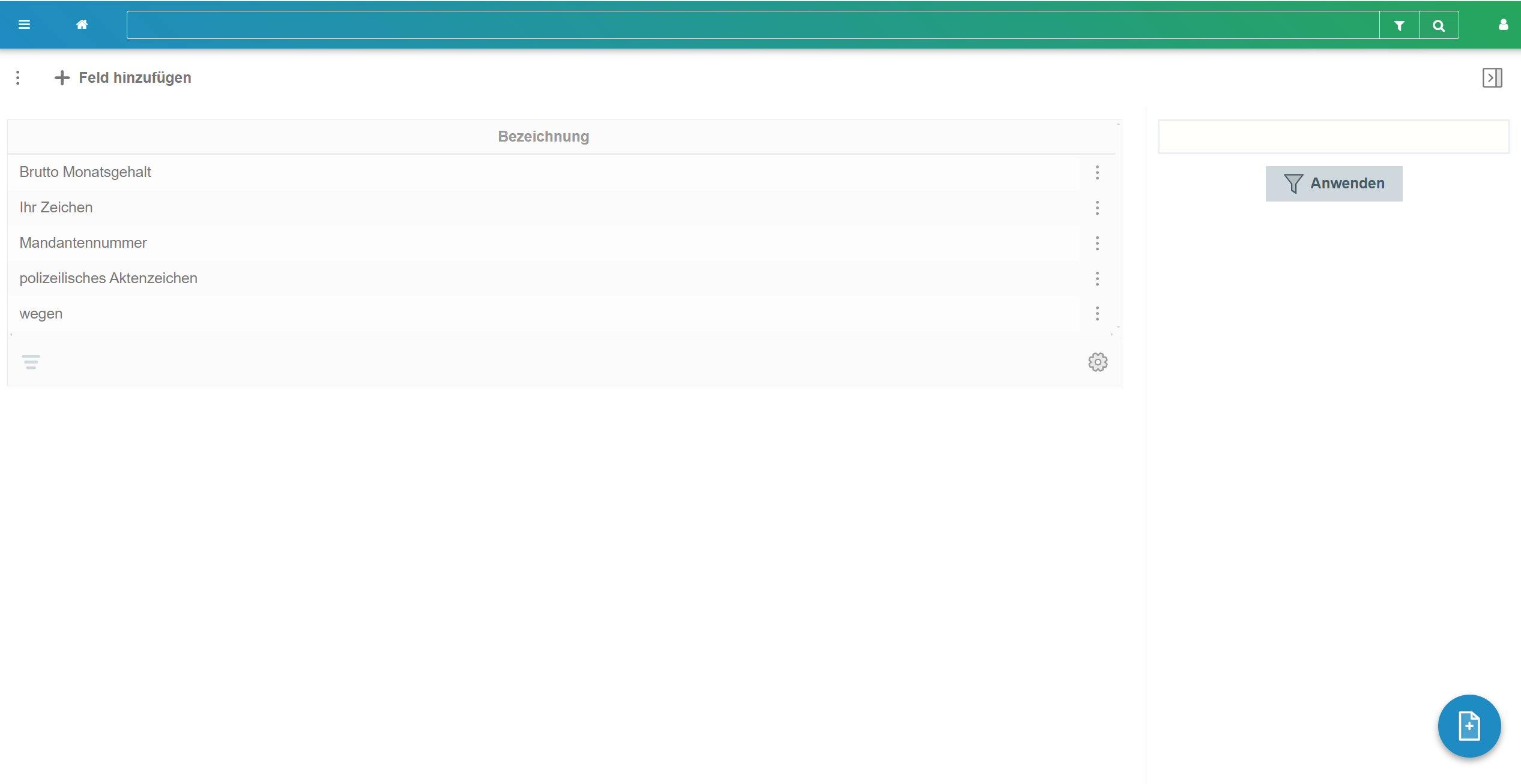 Über die drei kleinen Punkte am Ende der Zeile für die Feldbezeichnung können Sie ein Datenfeld nachträglich bearbeiten oder löschen.
