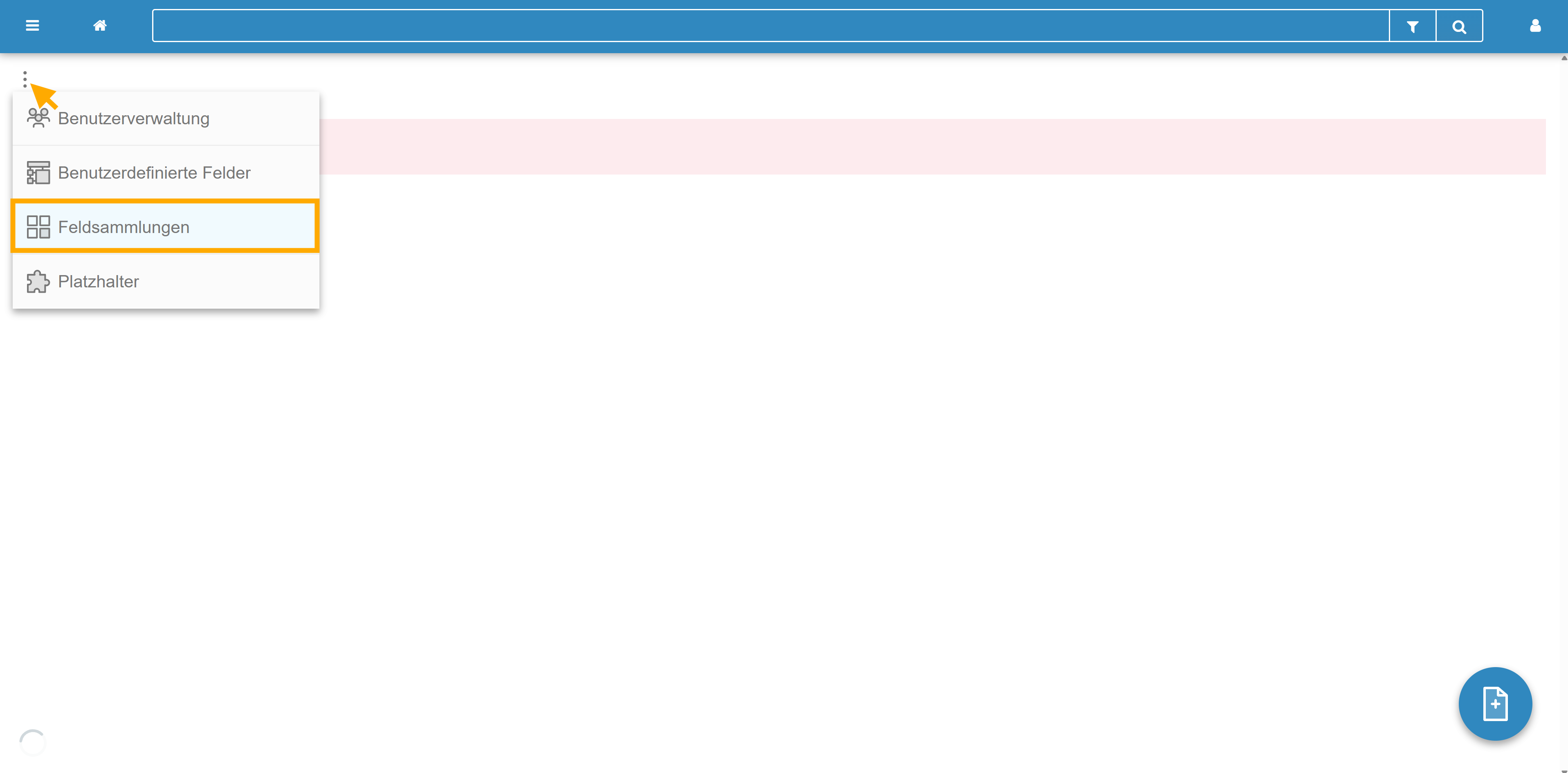 - Im 3-Punkte-Menü klicken Sie auf "Feldsammlungen".