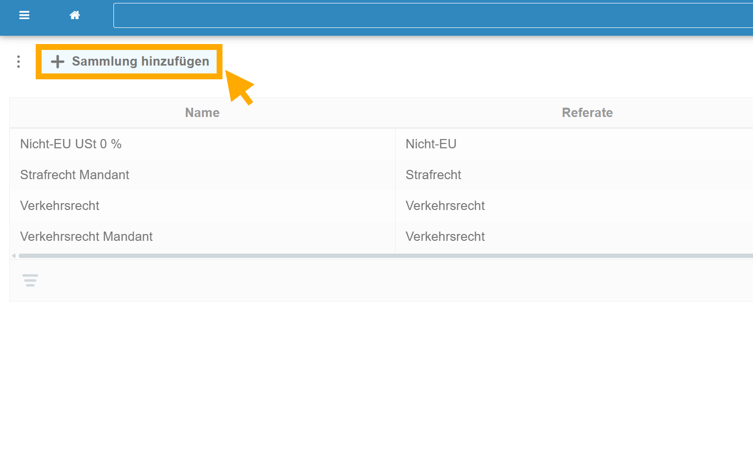 - Um eine neue Sammlung zu erstellen, klicken Sie auf "Sammlung hinzufügen" oben links.