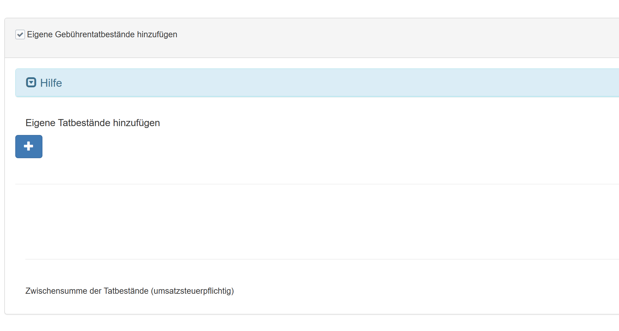 3. Es ist nun automatisch die Checkbox "Eigene Gebührentatbestände hinzufügen" angewählt.